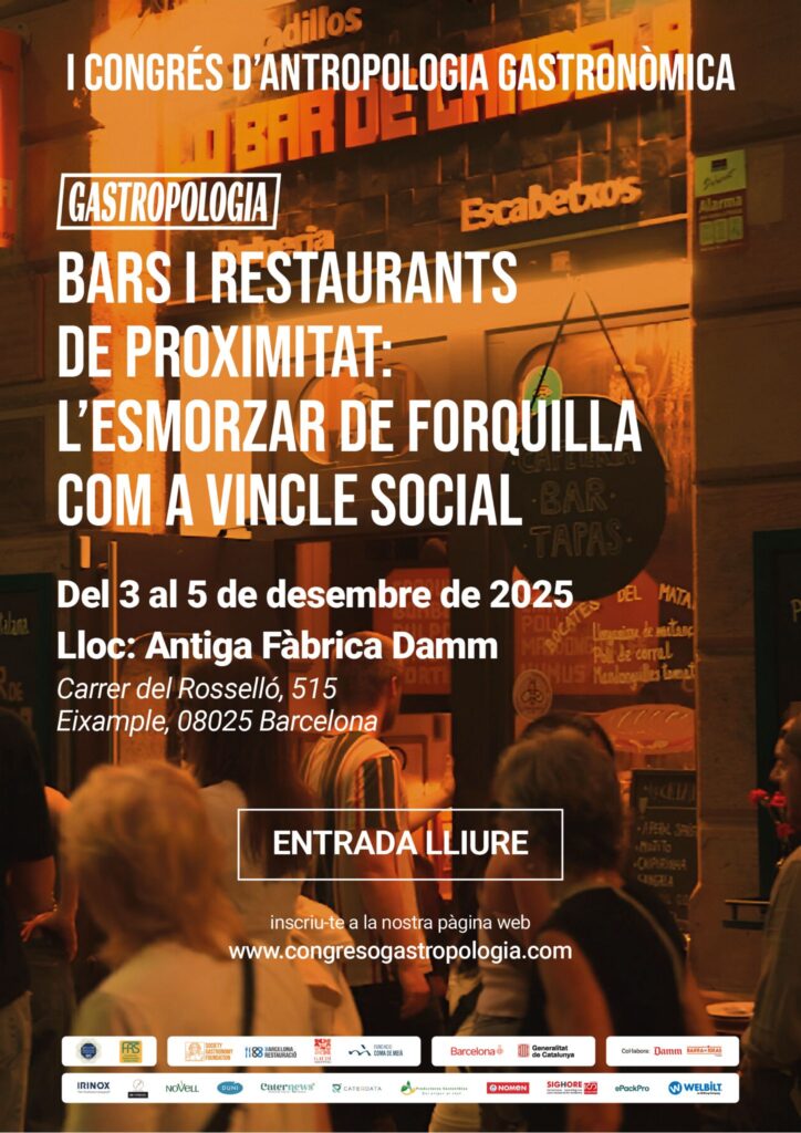 Del 3 al 5 de desembre de 2025, Barcelona celebrarà el I Congrés d’Antropologia Gastronòmica (Gastropologia), una acció inèdita que situarà al centre del debat el valor cultural i social dels bars i restaurants de proximitat. L’esdeveniment es desenvoluparà a la històrica Sala de Bàscules de l’Antiga Fàbrica Damm i formarà part de les activitats oficials de Catalunya, Capital Mundial de la Gastronomia 2025.