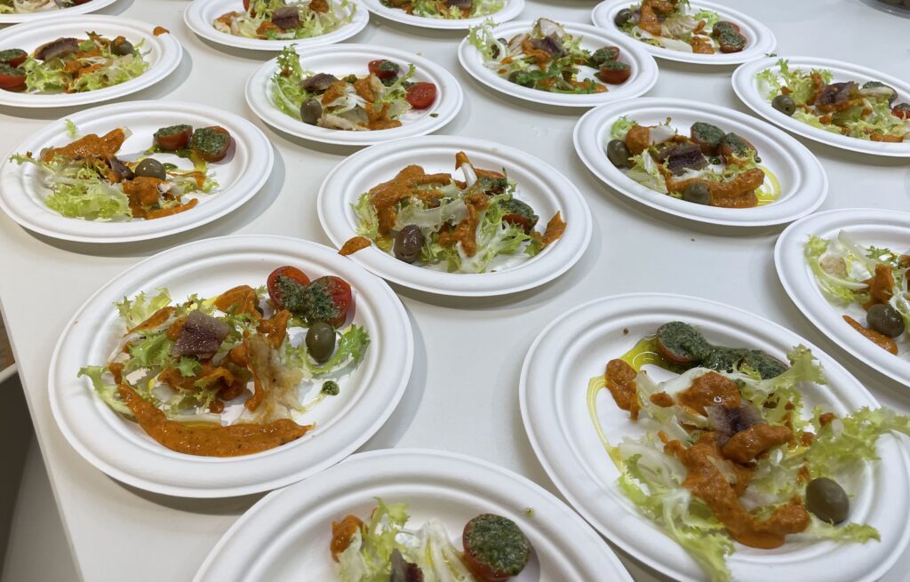 Sota el lema “Aprofitem l’escarola”, Camins ha present una Xatonada d’aprofitament amb peix, arengades i romesco així com panadons d’escarola. El Pesto amb fulles de pastanaga ha estat una altra elaboració. Mentre que el final dolç del taller ha presentat el Pastís de fruites madures en versió poma i plàtan.