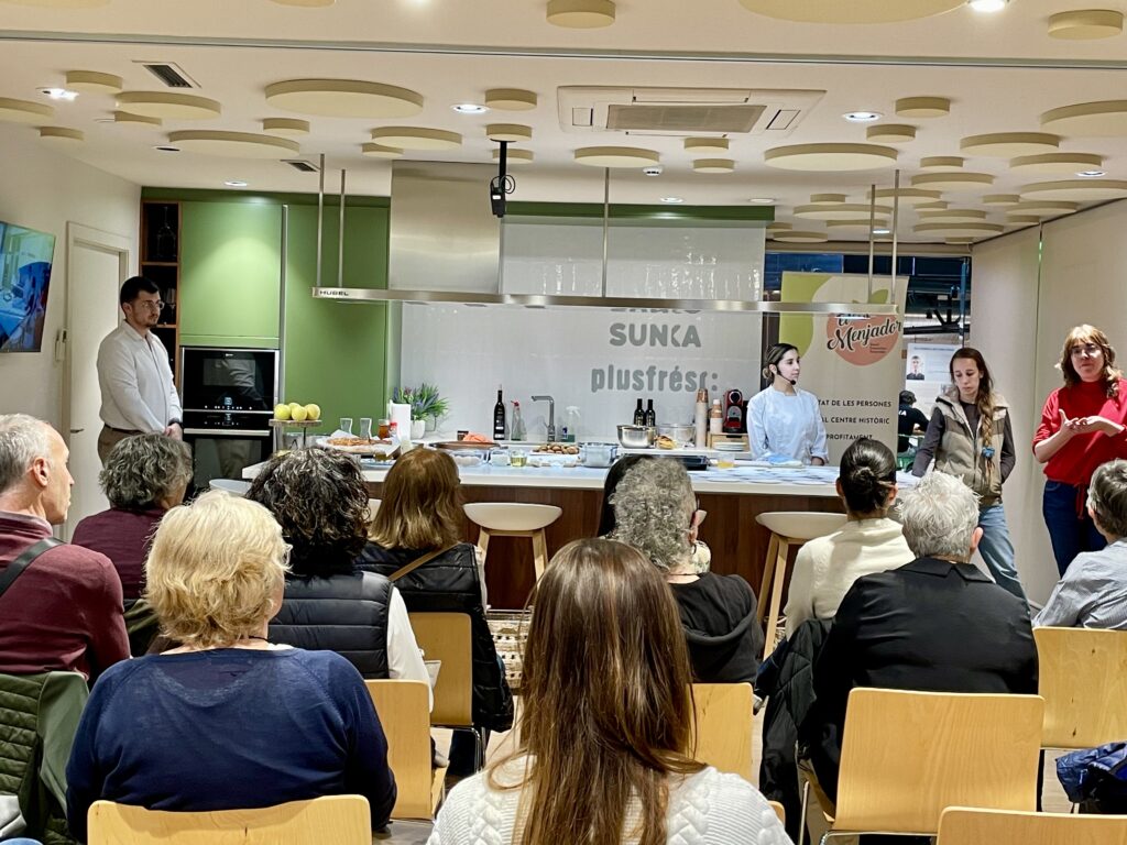Chaima Arjam d’Arenas Obrador ha impartit aquesta tarda de dimecres, dia 18 de març, un Taller de Cuina d’Aprofitament d’inspiració àrab a la Sala Sunka, en el marc de la campanya “- la resta que suma +” de Fundació Banc dels Aliments de les Comarques de Lleida, Fundació Jericó i El Menjador.