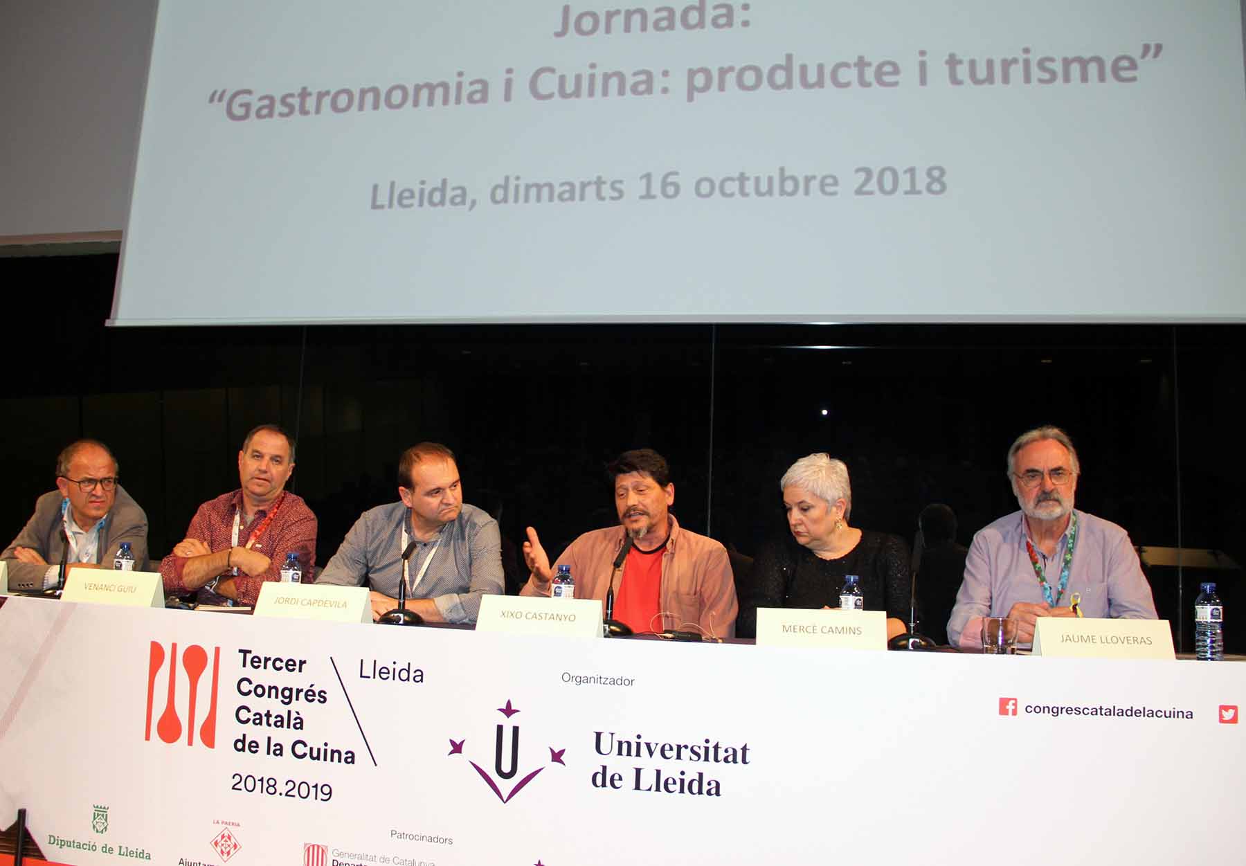 Jaume Lloveras de la UdL, els xefs Xixo Castanyo i Mercè Camins, del restaurant Malena i Casa Mercè, respectivament; els productors Jordi Capdevila de Carnsargaire i Venanci Guiu d’Olicatessen i, el subdirector general d’Indústries i Qualitat Agroalimentària de la Generalitat de Catalunya, en Joan Gòdia han estat els protagonistes de la segona taula de comunicacions que ha reclamat “una major relació directa del productor amb el cuiner per defensar la cuina i donar-li valor”.