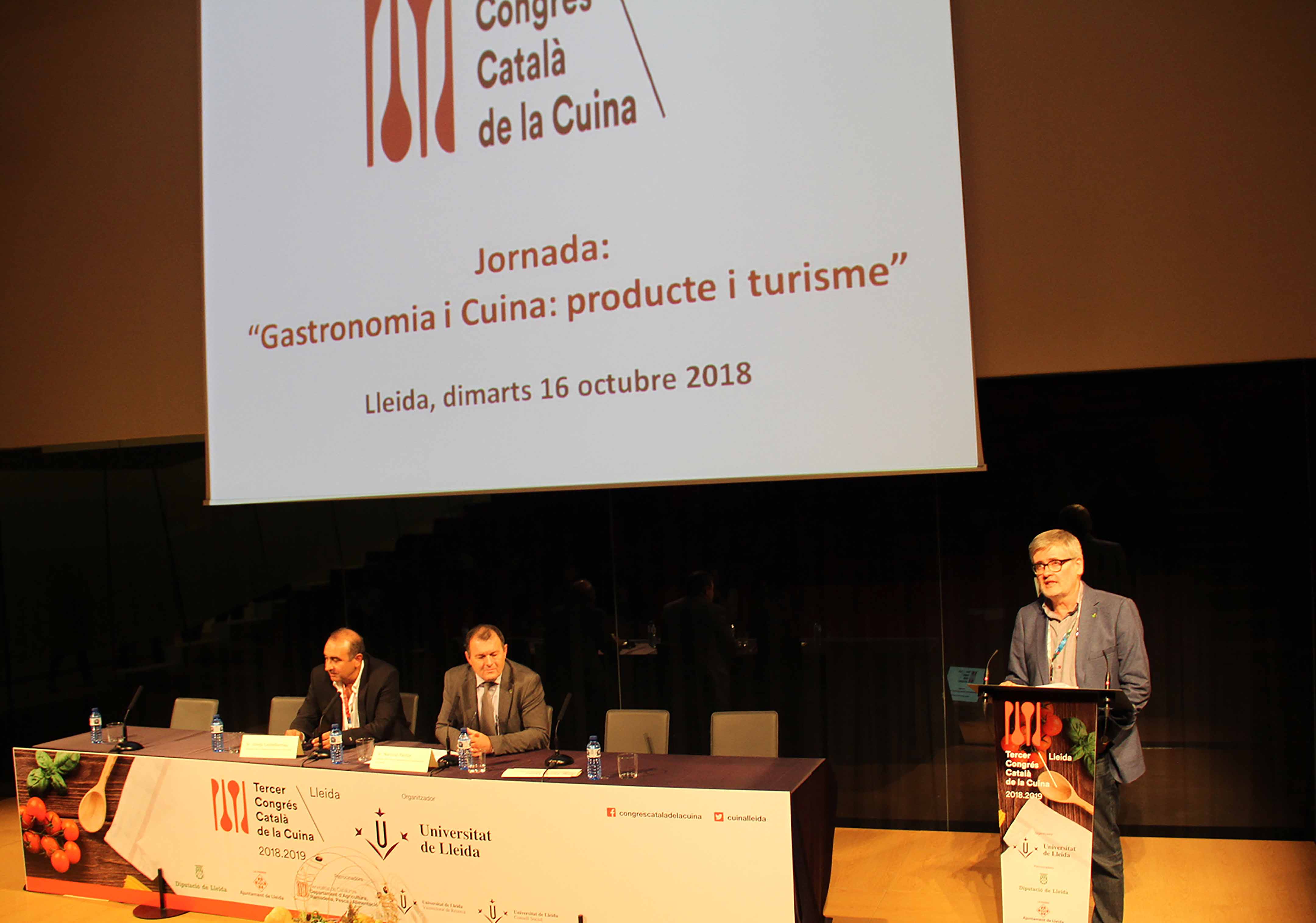 segons ha explicat Màrius Rubiralta, director executiu del Congrés que celebra avui la seva primer jornada lleidatana a la Llotja. Jordi Graell, professor de l’Escola Tècnica Superior Agrària de la Universitat de Lleida, (ETSEA-UdL) i director de la Comissió de Lleida d’aquest III Congrés, ha volgut destacar “l’oportunitat del sector agroalimentari lleidatà per fer producte gastronòmic i apropar-se a cuiners i restauradors per explicar els seus productes. Joan Biscarri, vicerector d’activitats culturals de la UdL; Rafael Peris, tinent d’alcalde de l’Ajuntament de Lleida; i Ferran Noguera, director dels serveis territorials a Lleida del Departament d’Agricultura, Ramaderia, Pesca i Alimentació de la Generalitat de Catalunya; han celebrat que Lleida fos seu d’aquest congrés i han animat als congressistes a debatre i pensar pel bé de la cuina i el territori de Lleida.
