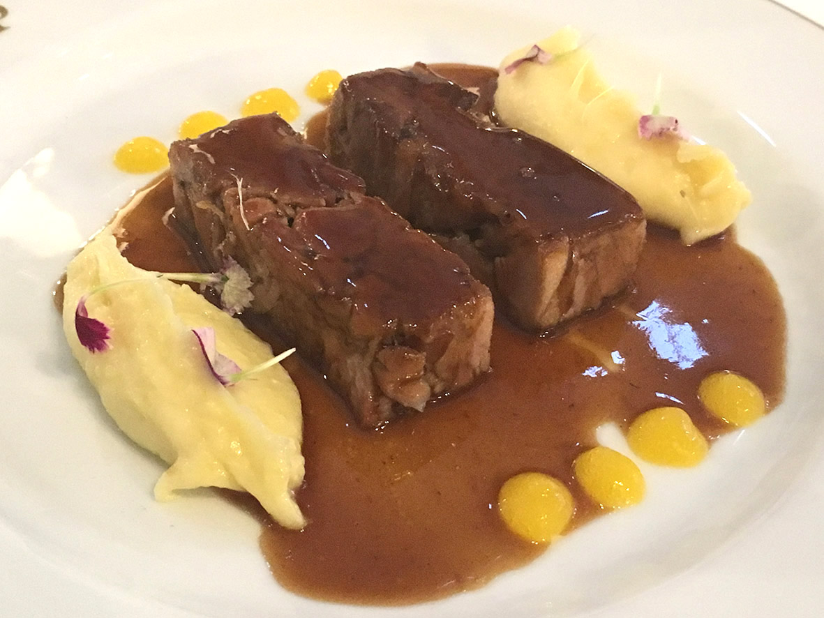 Entre los platos principales, además de los citados, destacan el Canelón de pollo asado con foie y setas; el Prensado de paletilla de cordero al horno, con puré de patata; y la Trucha de Alfarràs, con papada de cerdo y un escabeche suave, con almendras y setas.