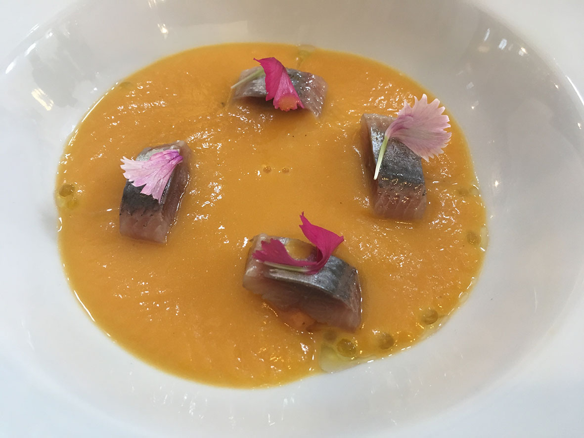 La carta del restaurant del Parador –amb vuit entrants, una desena de plats principals, suggeriments del xef i vuit postres– també contempla la possibilitat de configurar un menú propi amb un entrant, un plat principal i unes postres, per 32 euros, sense begudes ni cafè. Entre els primers, crida l’atenció la Crema de carabassa amb moniato i sardina; la Graellada de verdures; o els mencionats caragols i amanida de panadó.
