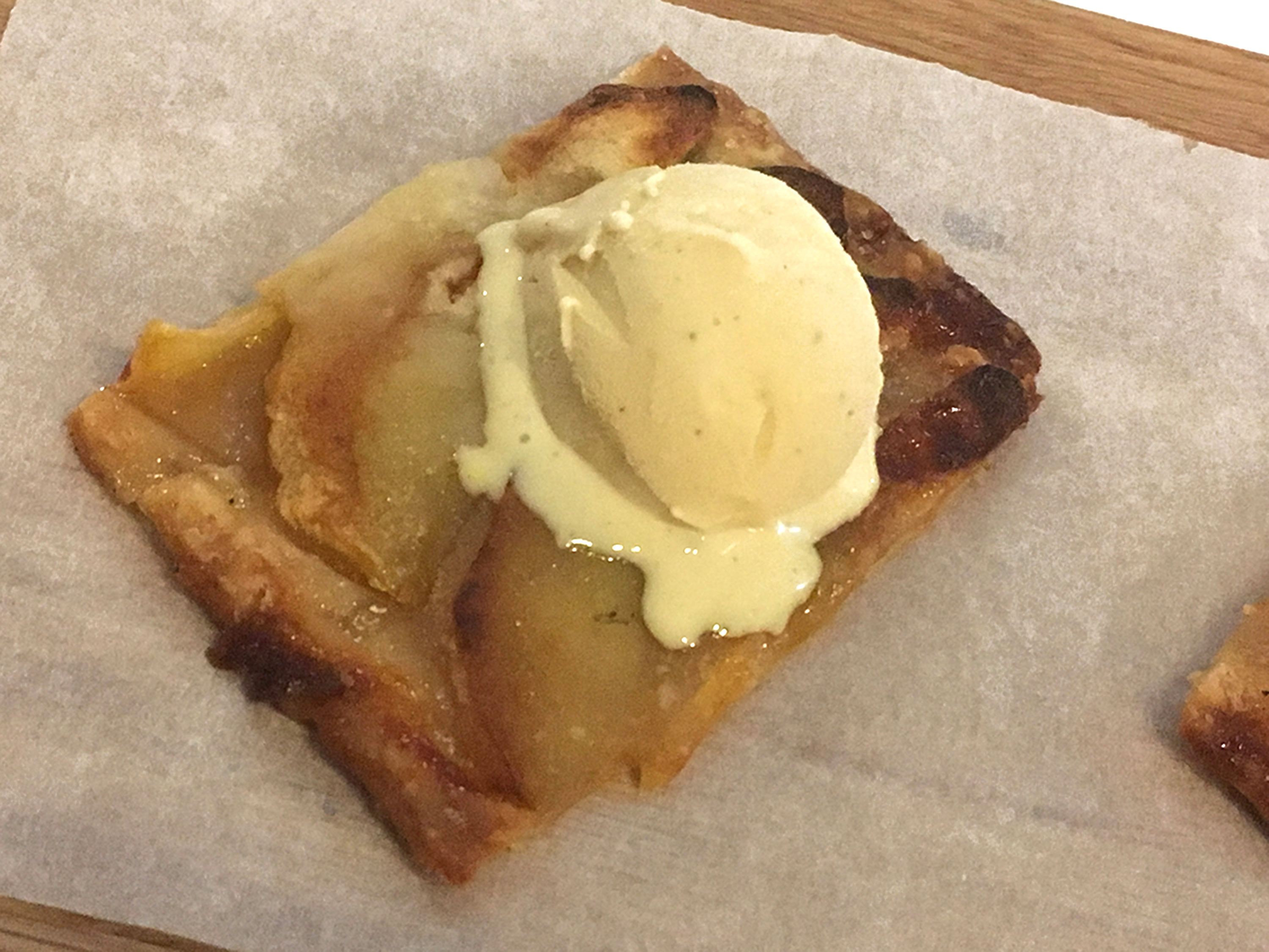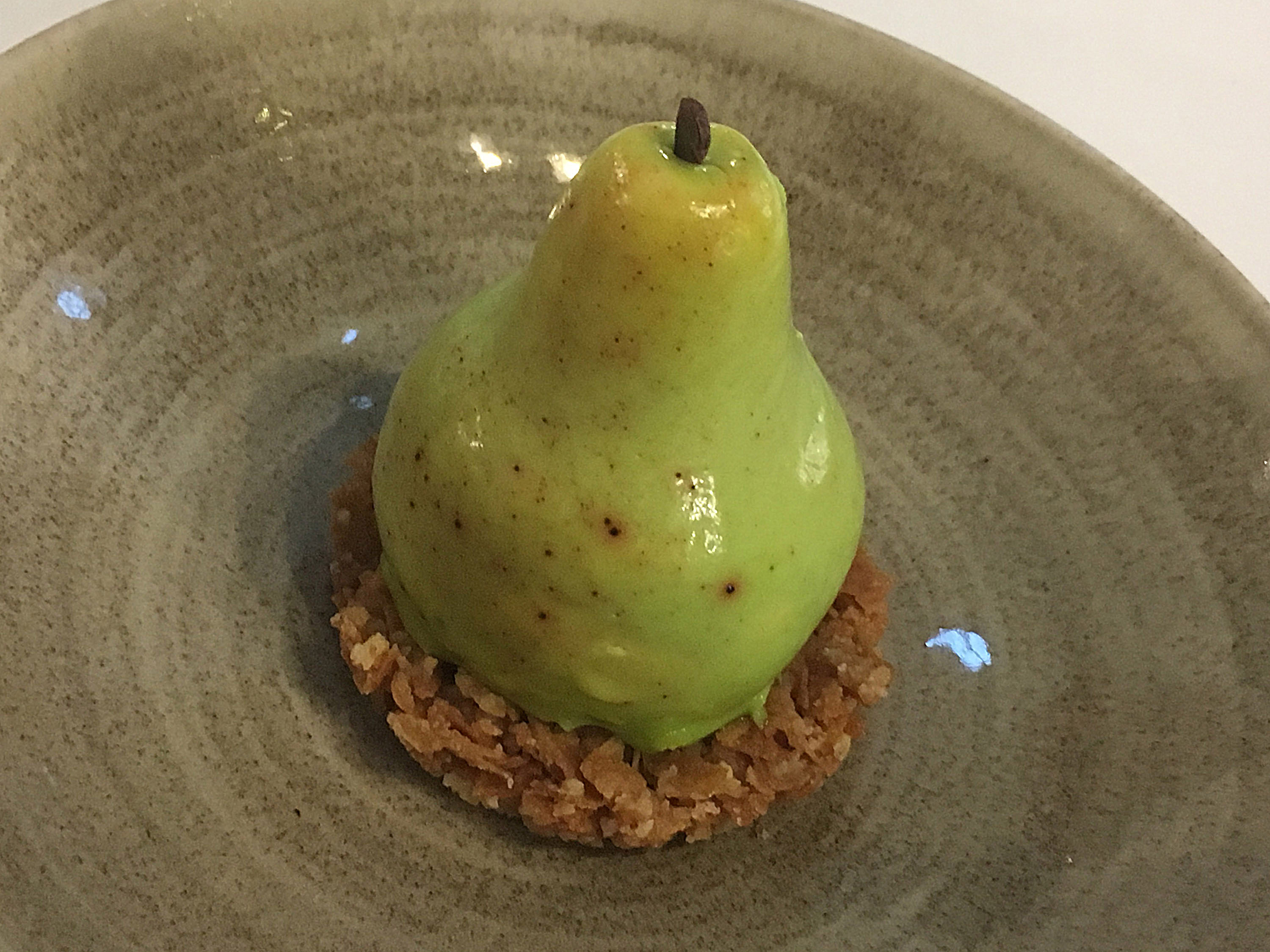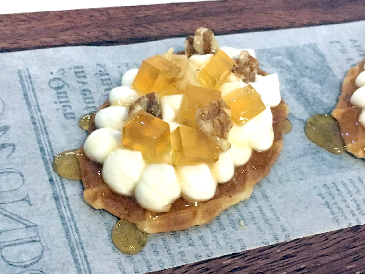 Obleas de miel con requesón y nueces; Crema catalana con carquiñolis; Interpretación de la Pera de Lleida (José Ramón Casas) o Tarta Sacher a la leridana con melocotón de Alfarràs, son algunas de los postres.