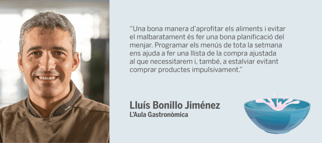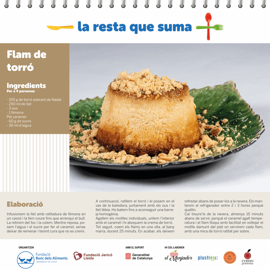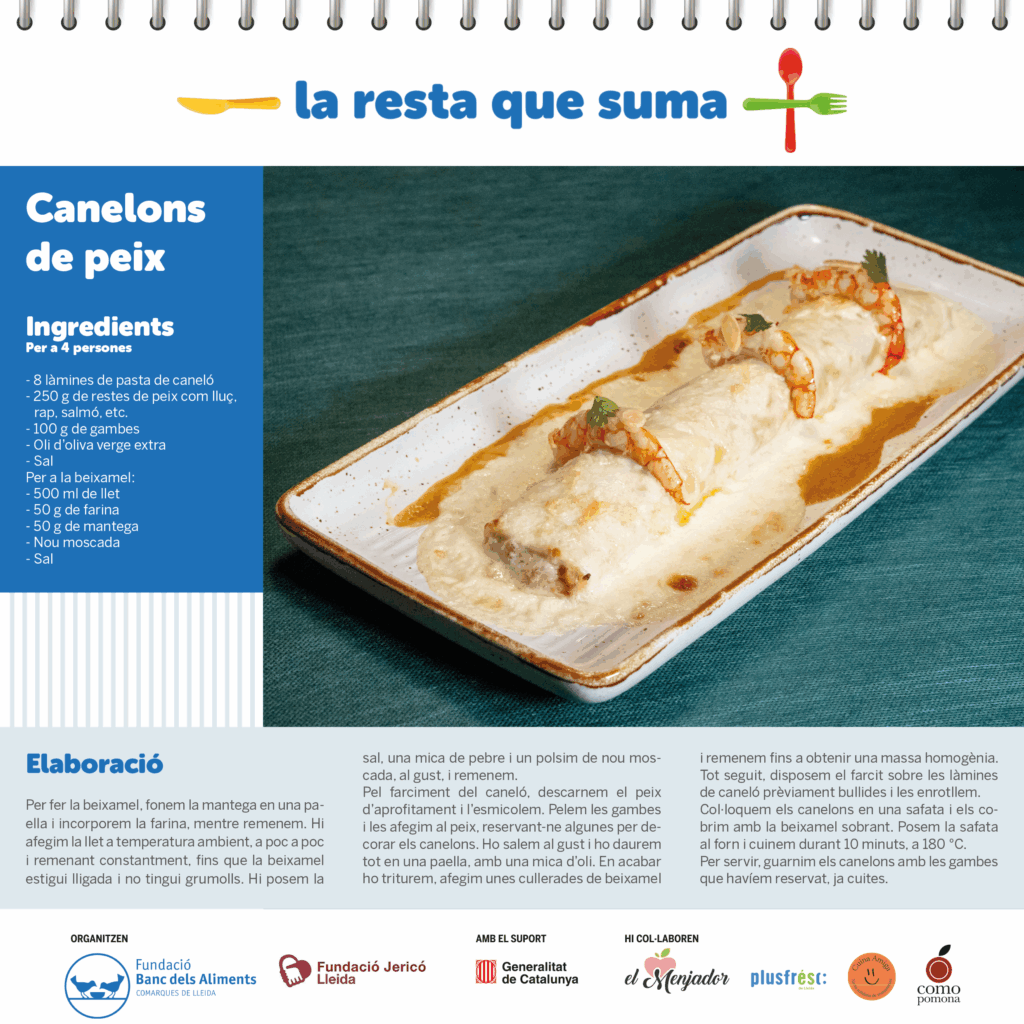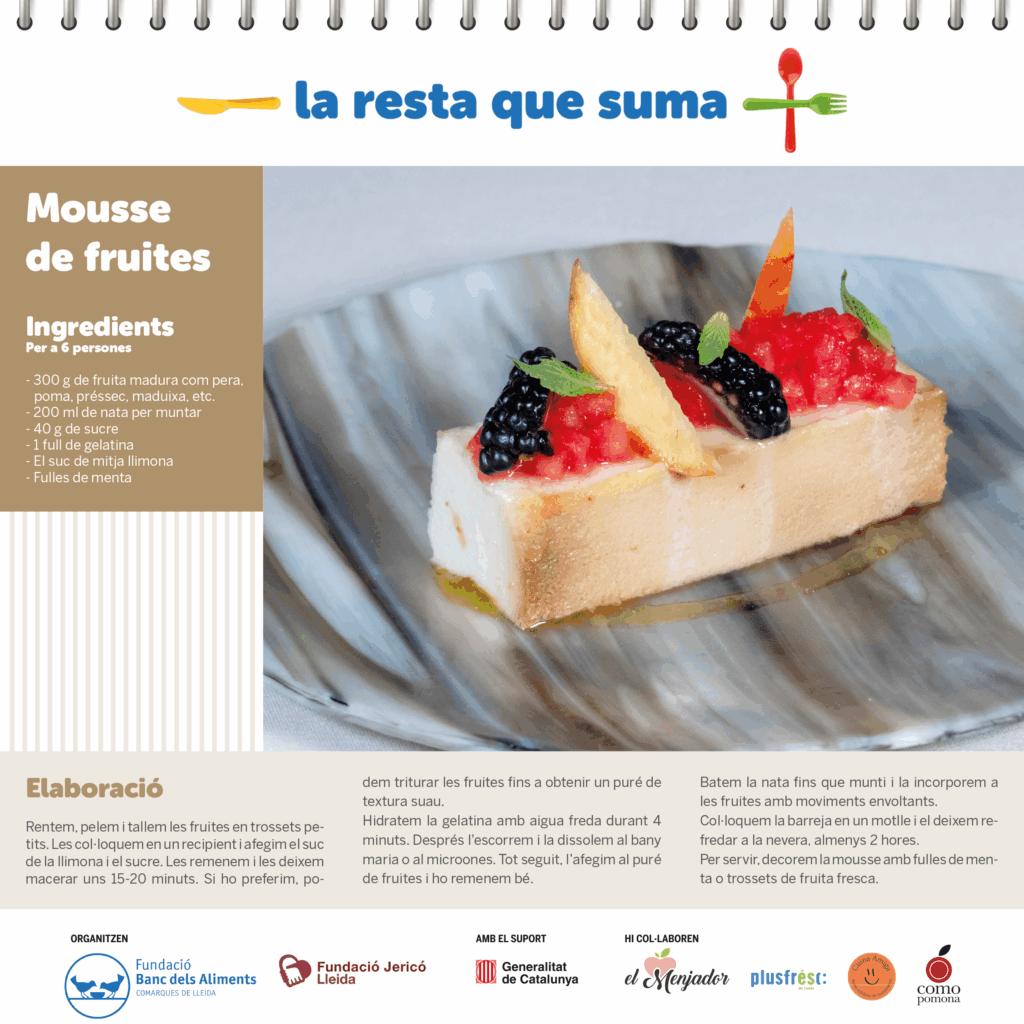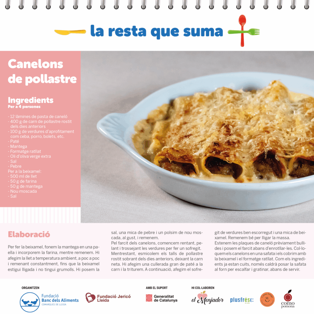 El fet d’aprofitar els aliments amb una gestió sostenible i responsable –i si és convenient amb un segon i tercer ús, abans de deixar que es facin malbé– és la millor via per evitar el malbaratament. És per això que, amb – la resta que suma +, el Banc dels Aliments de les Comarques de Lleida i la Fundació Jericó, gestors mancomunats de l’espai comunitari El Menjador, ens interpel·len per esdevenir agents actius en aquesta lluita. La mostra té el suport de la Generalitat de Catalunya i la col·laboració dels cuiners del col·lectiu Cuina Amiga que participen cada any en la campanya “Diumenge cuino jo”, a benefici d’El Menjador; i que aporten algunes de les recomanacions d’aprofitament alimentari recollides en el llibre “Cuina Amiga. Fogons Solidaris” i receptes per incorporar l’hàbit de l’aprofitament en el nostre dia a dia.