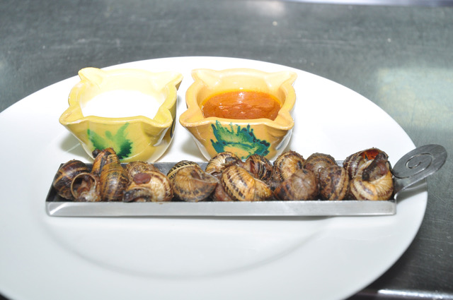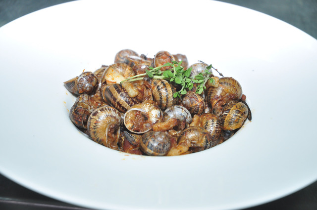Paté de caracol confitado con aceite; Encaramado de caracoles y confite de cerdo; Focaccia de cebolla, caracol y queso; Buñuelos de caracoles y alioli de membrillo; y Brick de caracoles y pisto; han sido los aperitivos de esta edición.