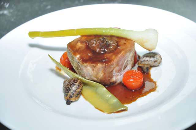 La “llauna” de caracoles a la gormanda; y la Cazuela de caracoles picantes; fueron los platos cien por ciento caracoleros. Mientras que Trinxat de col y patata, con papada y ragout de caracol; y Meloso de cordero con ciruelas, ajos tiernos, espárragos y caracoles, fueron los platos principales de esta propuesta 2019.
