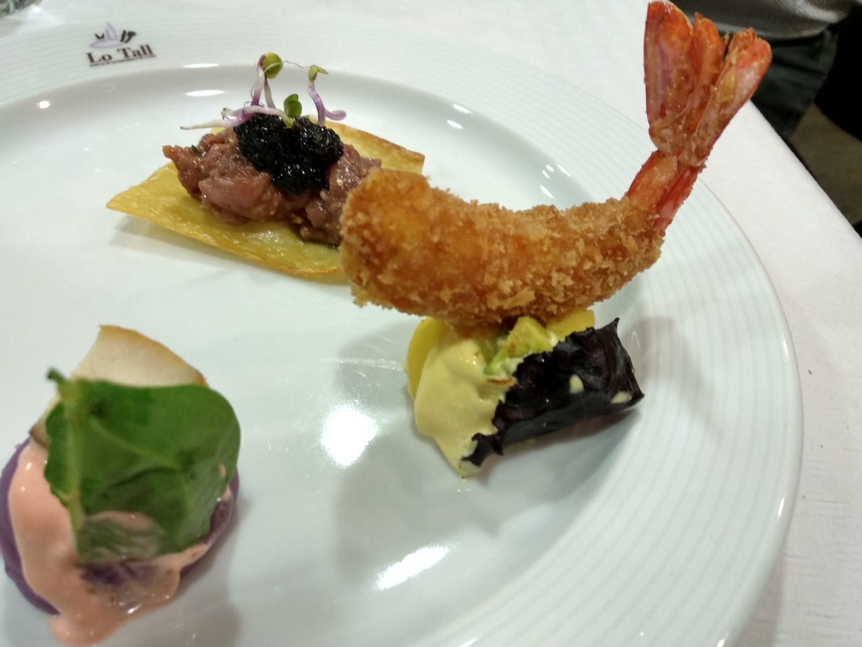 Mory, con la voluntariosa ayuda de un puñado de socios de Lo Tall, abrió la cena con diferentes aperitivos y entrantes con marcado acento de fusión entre las técnicas y productos del Perú, Japón o el Valle de Arán. Así como: Pisco Sour de mandarina; Causa “limeña” con tempura de langostinos; “Patacón de ají” de pulpo y carabineros; Tartar de pato con crujiente de yuca y caviar Nacarii; “Turadito” de esturión del Valle de Aran con leche de tigre de frambuesa; y Croqueta de pato con “ají” amarillo. El ciervo fue el protagonista de otros dos platos principales: Canelón de venado, tocino ibérico, y salsa de boletus; y Muslo de ciervo a la cazuela con mostaza de la Val d’Aran y chocolate peruano.