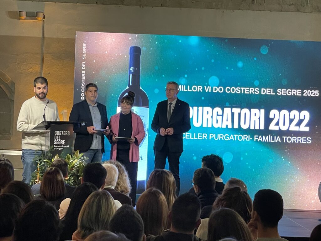 Purgatori 2022 és el guanyador del IV Concurs de Vins de la DO Costers del Segre. Aquest vi negre ecològic, del celler Purgatori de Família Torres, ha seduït el jurat d’aquesta edició, format per una trentena de sommeliers, que l’ha considerat el millor vi del certamen, ja que ha obtingut la puntuació més alta en totes les categories. Purgatori 2022 és un cupatge de garnatxa i gonfaus envellit entre 9 i 12 mesos en botes de roure francès, que presenta un color cirera bell amb reflexos granats, amb olor intens i sabor equilibrat. El veredicte es va donar a conèixer ahir al vespre en un acte a la Seu Vella en què van assistir representants dels 26 cellers de la denominació lleidatana que han presentat els seus vins al concurs. El Concurs l’organitza el Consell Regulador de la DO Costers del Segre, amb el suport del Patronat de Promoció Econòmica de la Diputació de Lleida i la coordinació tècnica d’en Ramon Roset, director dels Premis Vinari.